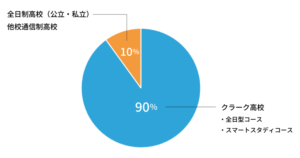 進学先は、クラーク高校をはじめ、全日制高校(公立・私立)や他校通信制高校などがあります。その中でも、クラーク高校へ進学する生徒が多くいます。