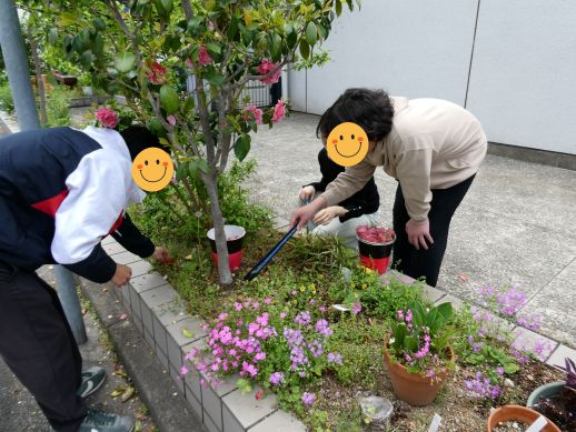 園芸の時間では、ポカポカとした春の陽気の中、花壇のお手入れをしました!