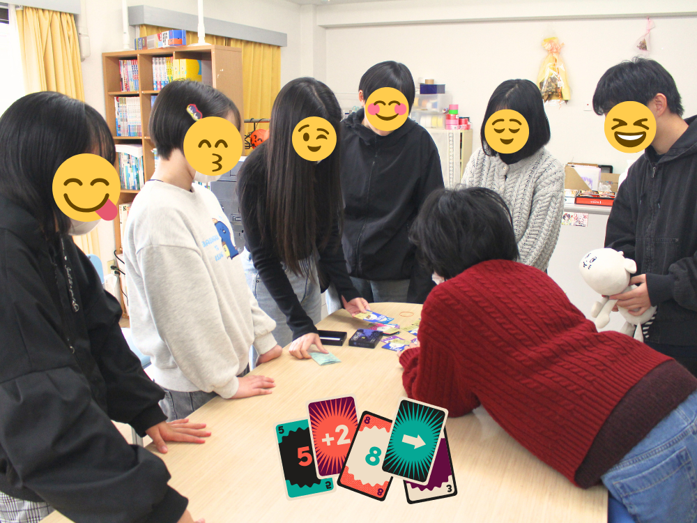 中庭が使えない日や外に出ない気分のときは、教室でそれぞれが自由に過ごしています。