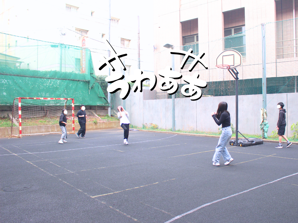 休み時間になると自然と生徒たちが中庭へ集まり、元気いっぱいにドッジボールがスタート!