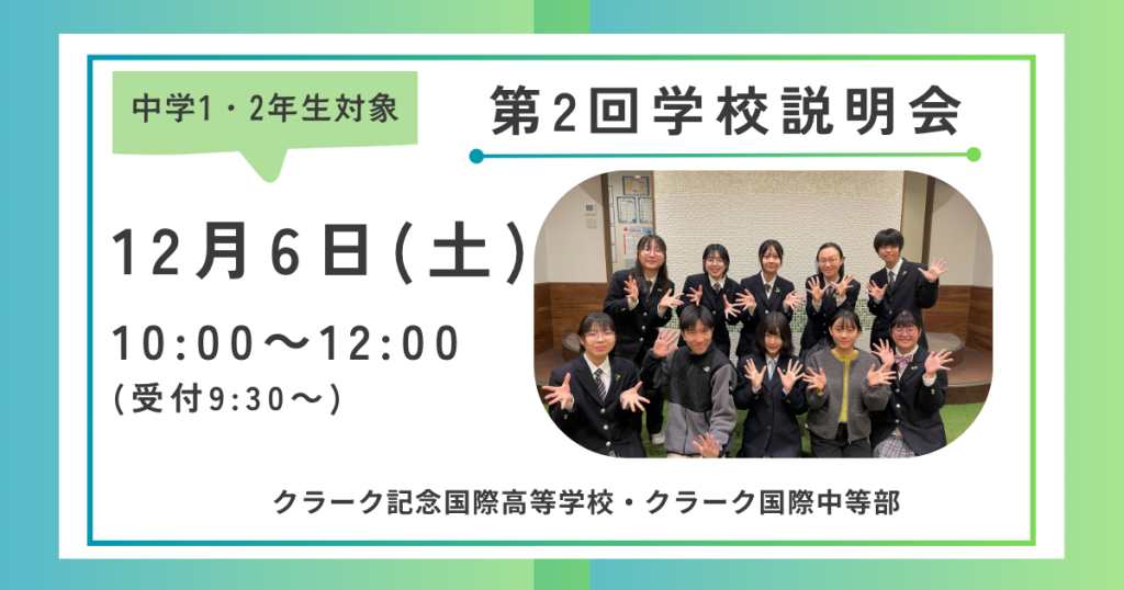 【中学1・2年生対象】クラーク高校&中等部共催の学校説明会を12月6日(土)に開催!ご予約受付中✨