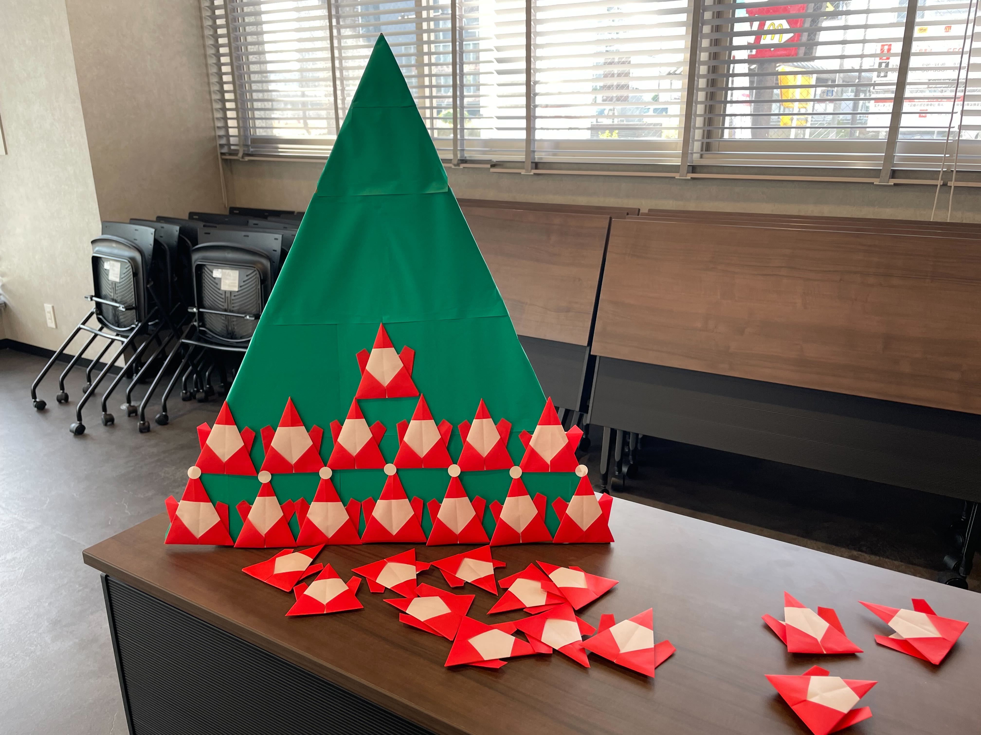 サンタさんを1個ずつみんなで作って、1つのツリーに!
