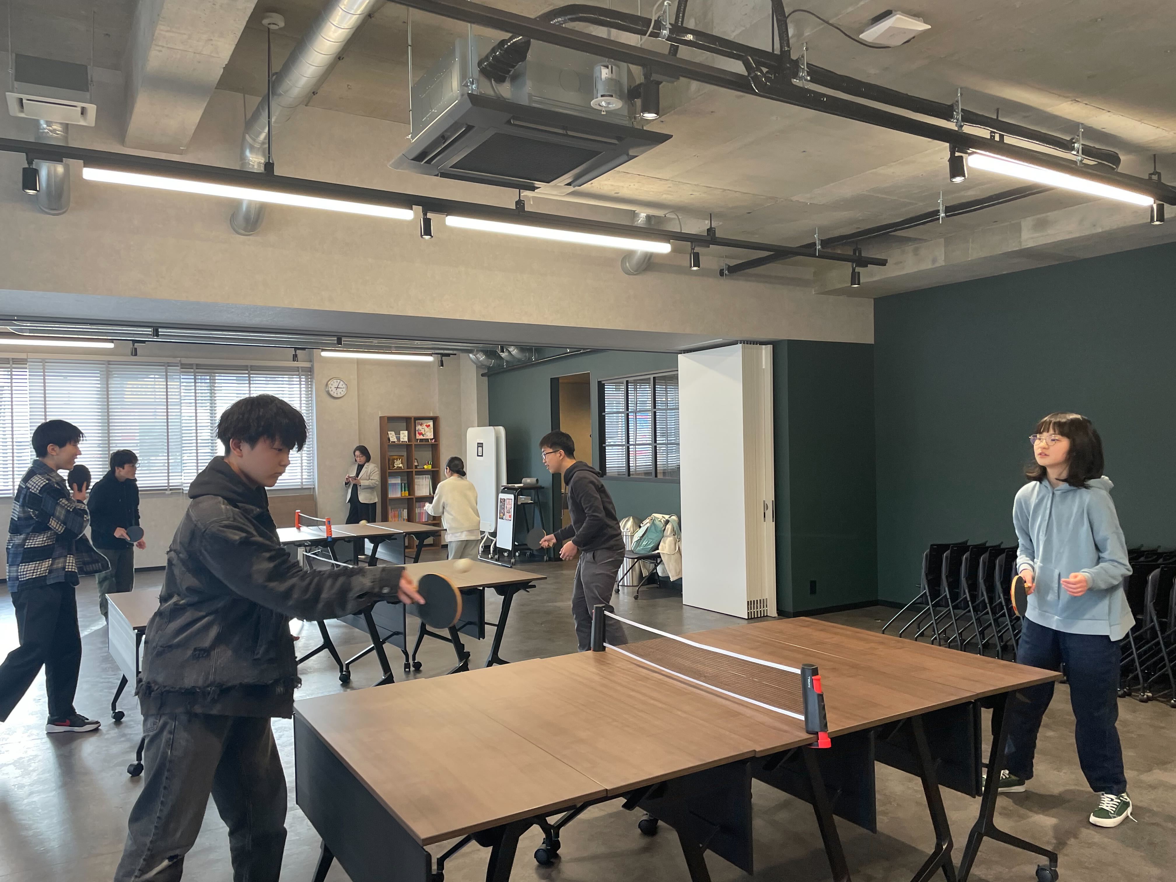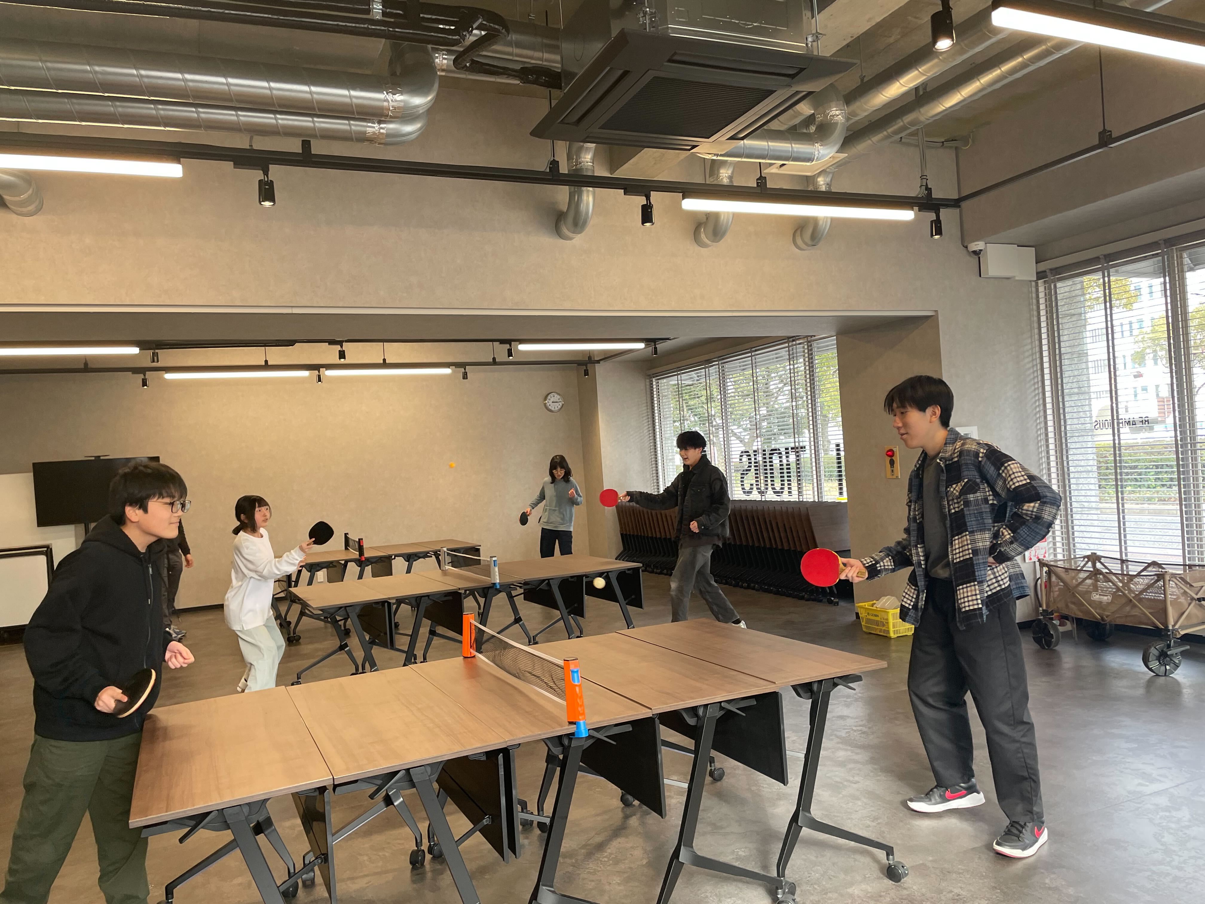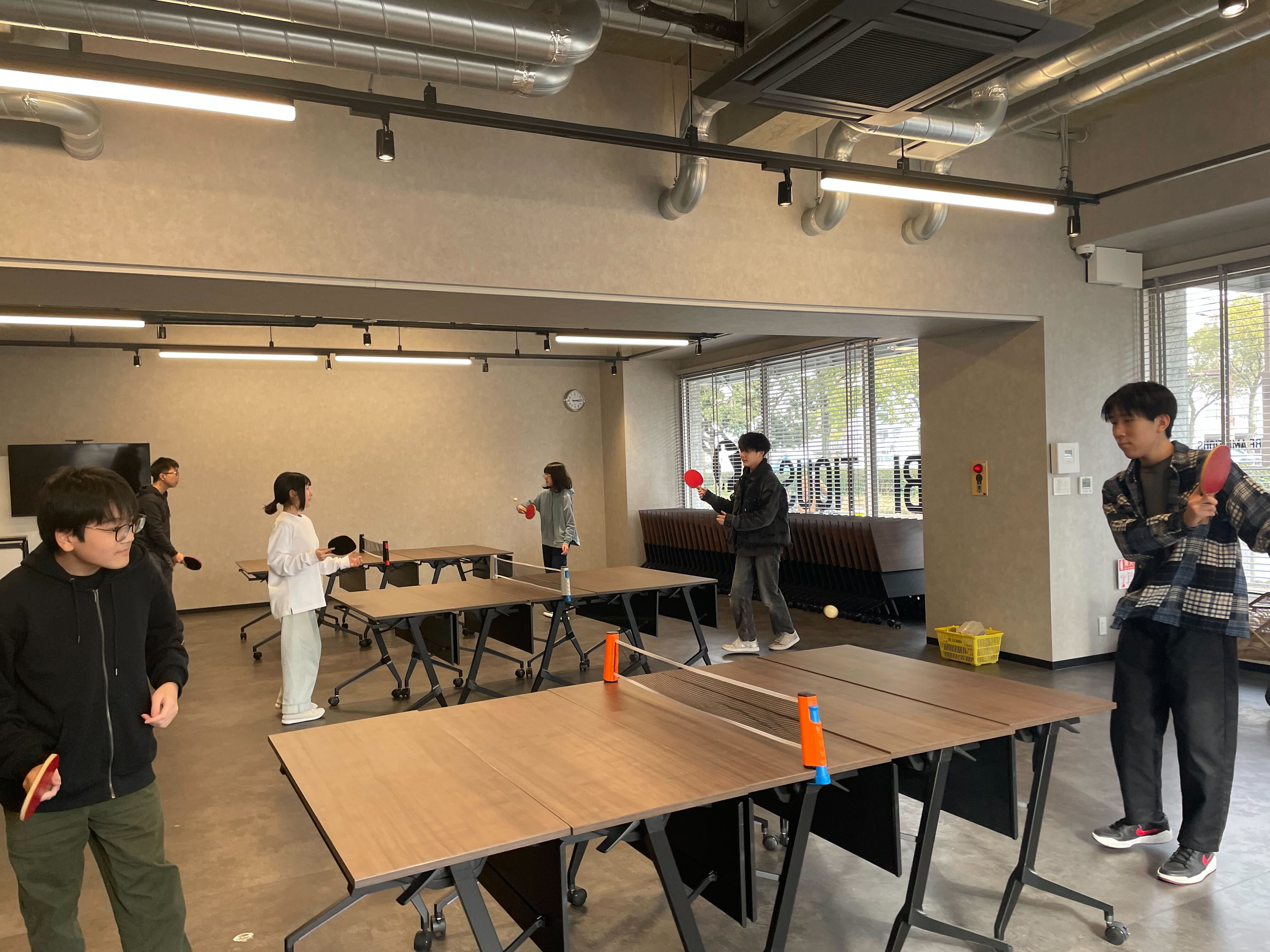時間を区切ってペアを変えながら、みんなで卓球を楽しんでいます!卓球を通して、自然と横のつながりも増えてきました!