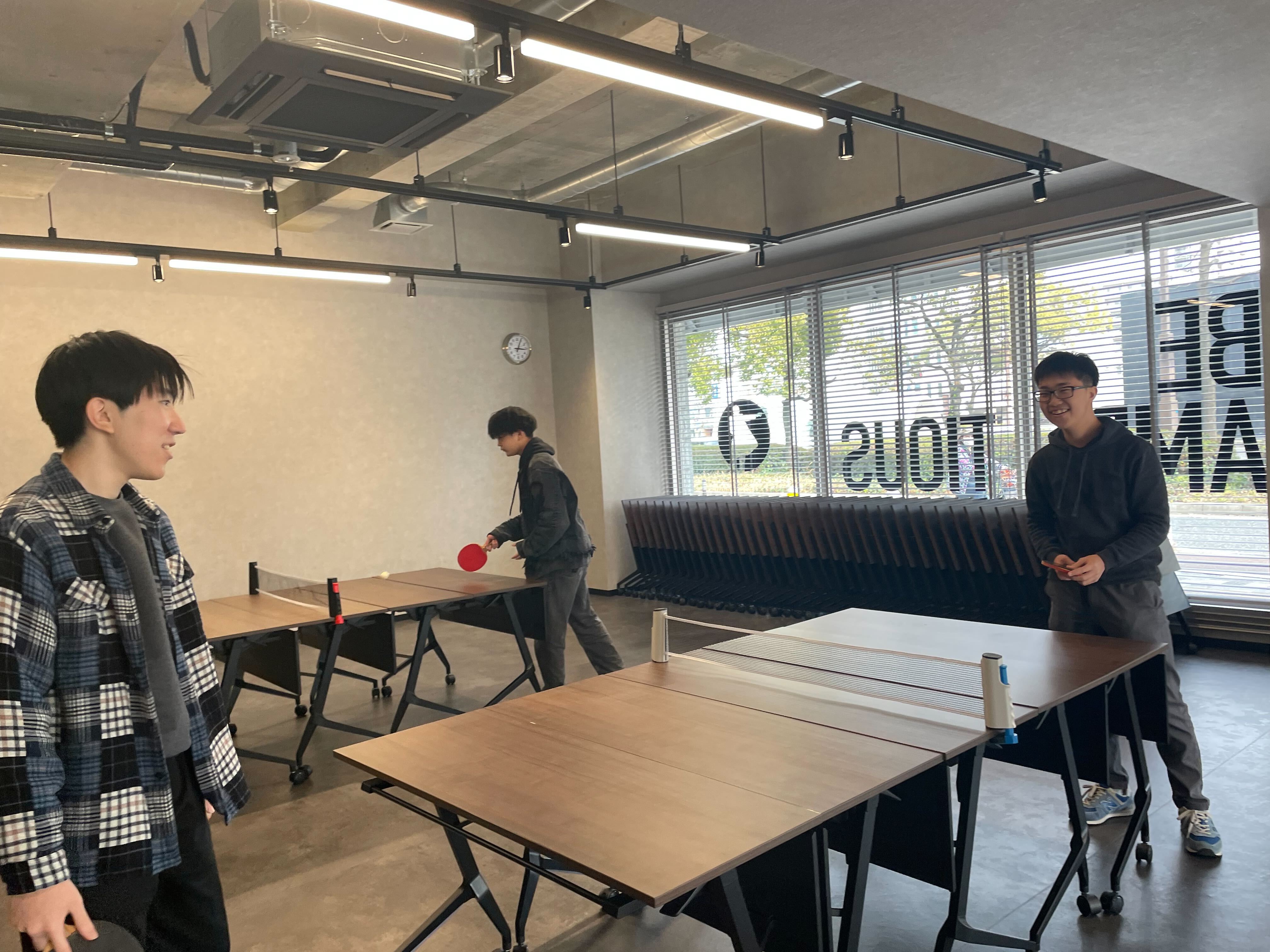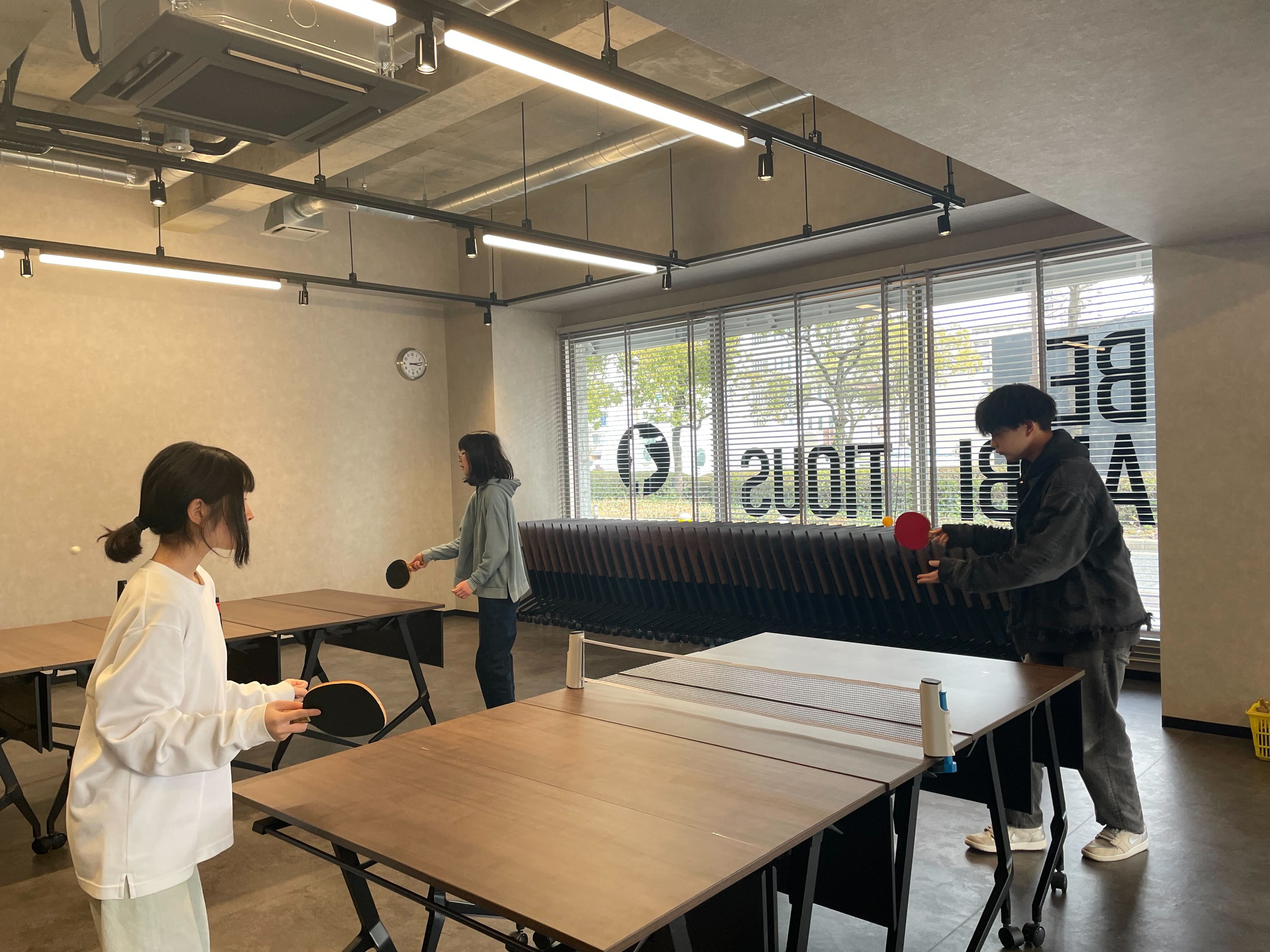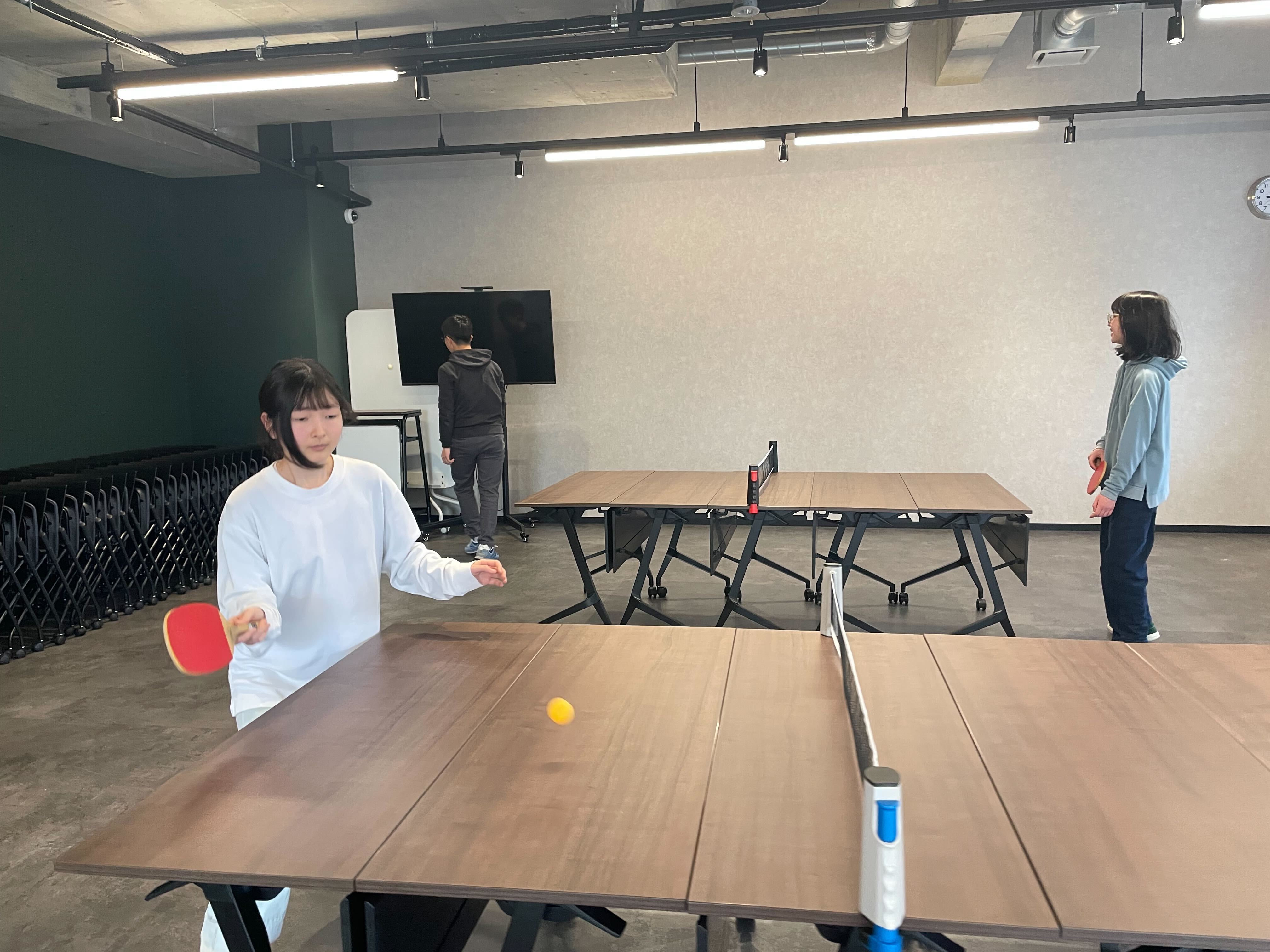 時間を区切ってペアを変えながら、みんなで卓球を楽しんでいます!卓球を通して、自然と横のつながりも増えてきました!
