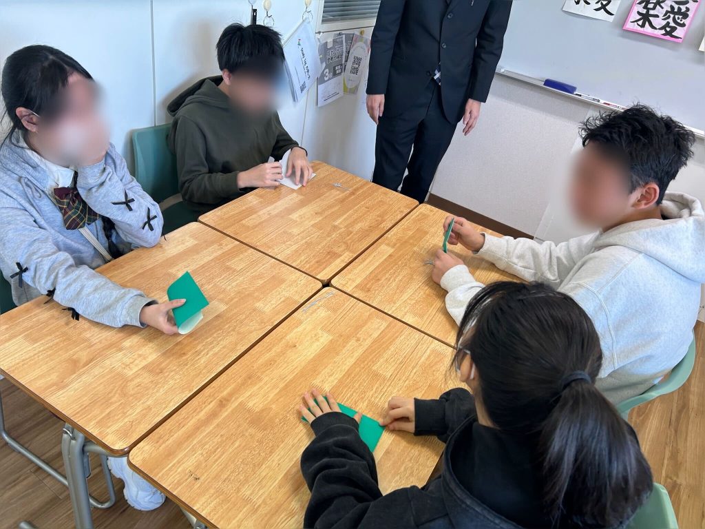 紙飛行機の作り方をグループで相談しながらより飛ぶ飛行機を作成しました。
