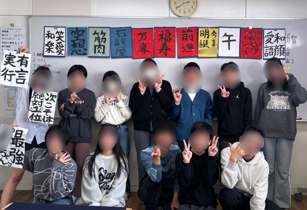 こんにちは。大学生ボランティアのトトロです。 今日の5時間目は、クラーク高校の先生に書道の授業がありました! 今回の授業では、前回、前々回と練習してきた書き初めを完成させます。 いつもの半紙とは一風変わった、色がついていたり、金箔が貼ってあ... -