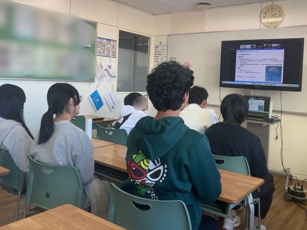 今年度はクラーク高校と合同で、動画視聴と乾電池パラシュートゲームを行いました!