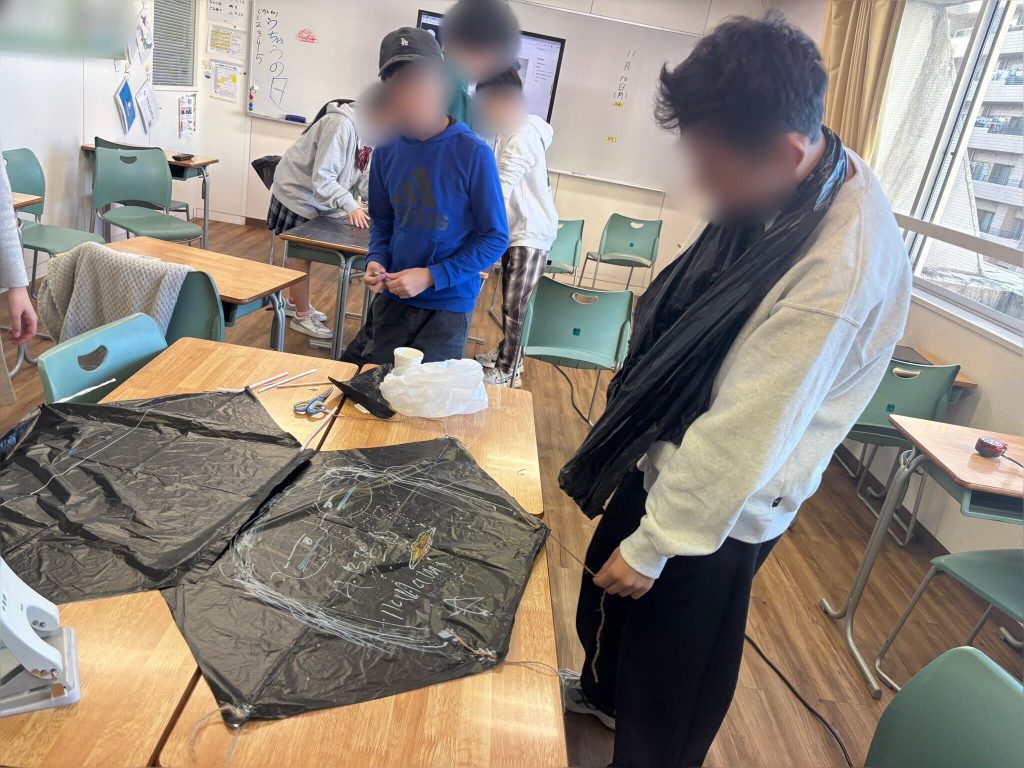 中等部生は2チームに分かれ、パラシュートの作成を行いました🚀