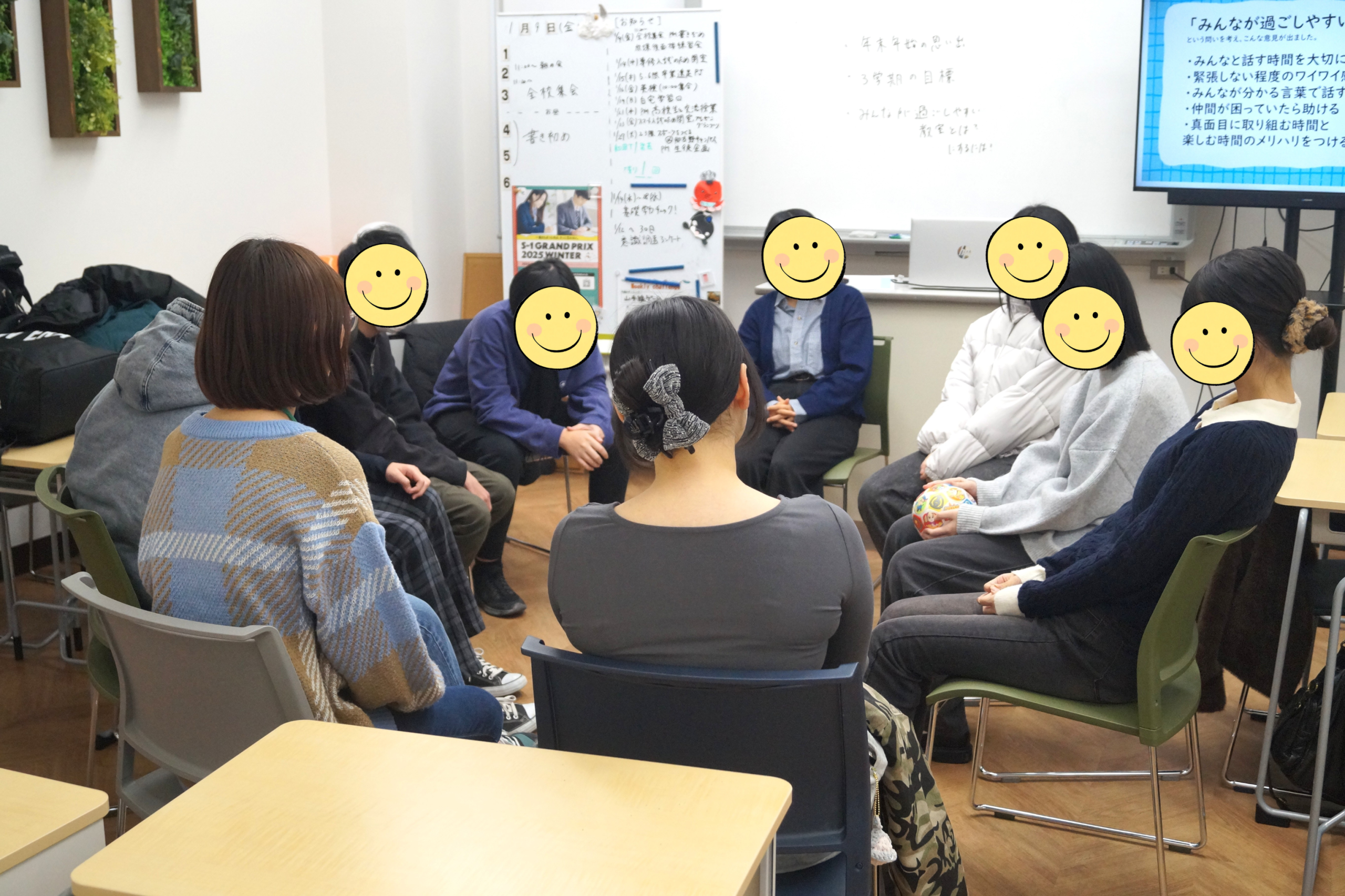 今日の4時間目に今年の目標などをみんなで話し合いました!