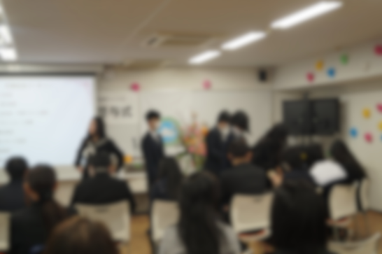 次に今年度の授業担当だった先生からのメッセージムービーやチューターからのフォトムービーが流れ卒業生・在校生共に今年度の思い出を振り返り笑い声がたくさん聞こえてきました。