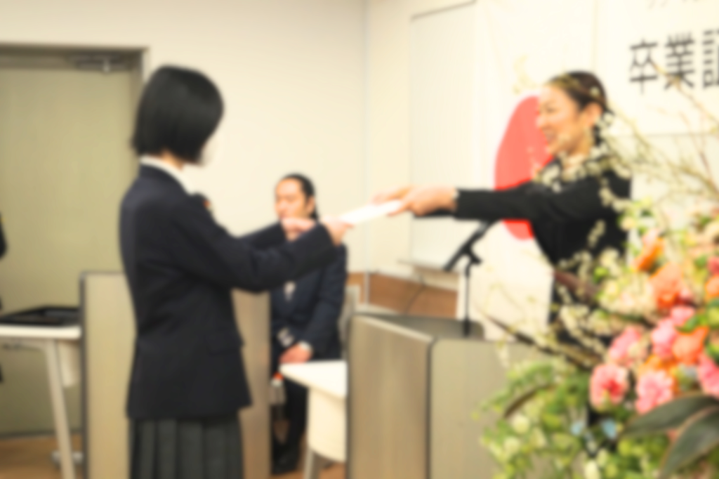 卒業式では卒業生が一人ひとり卒業証書をキャンパス長から受け取りました。どの生徒も堂々とした態度で卒業証書を受け取る姿がみられました。