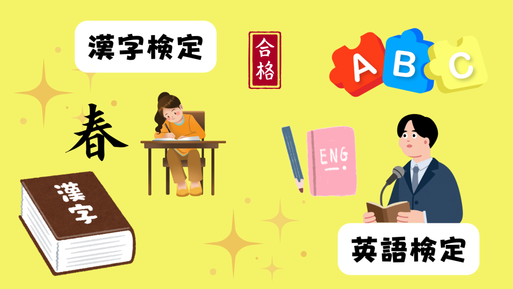 漢字検定は文章を書く力アップに、英検は英語の理解に役立ちます。