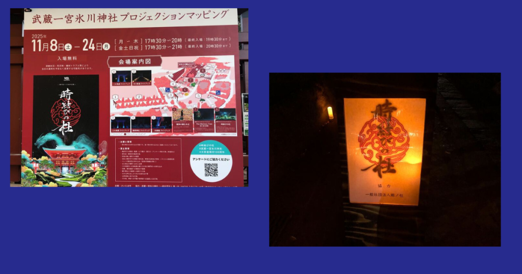 朝、大宮氷川神社を通ると【プロジェクションマッピング】の張り紙と大きなセットが設置してありました。