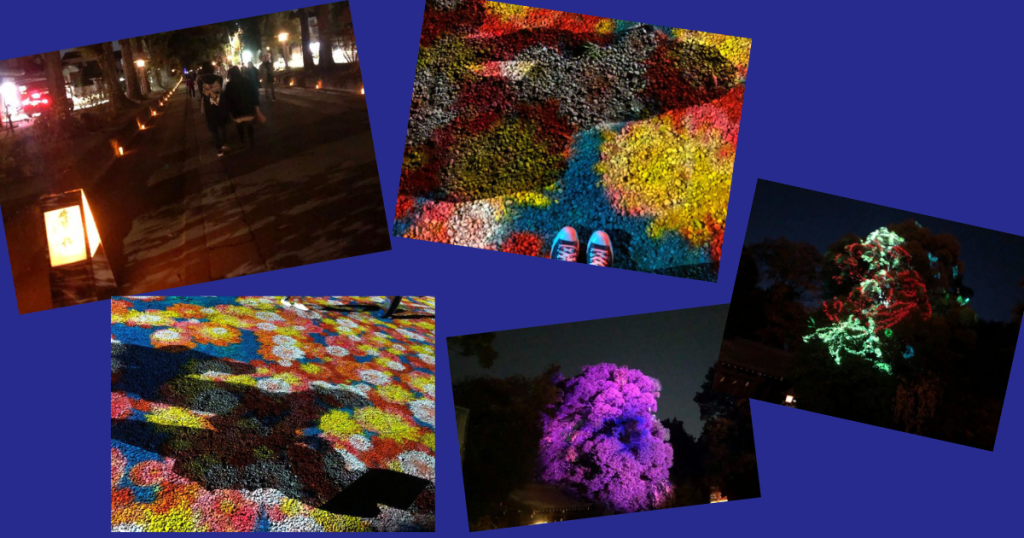 そして鳥居を抜けると・・・水面をイメージしたプロジェクションマッピングや本殿をスクリーンにしたプロジェクションマッピングなどとても綺麗でした!