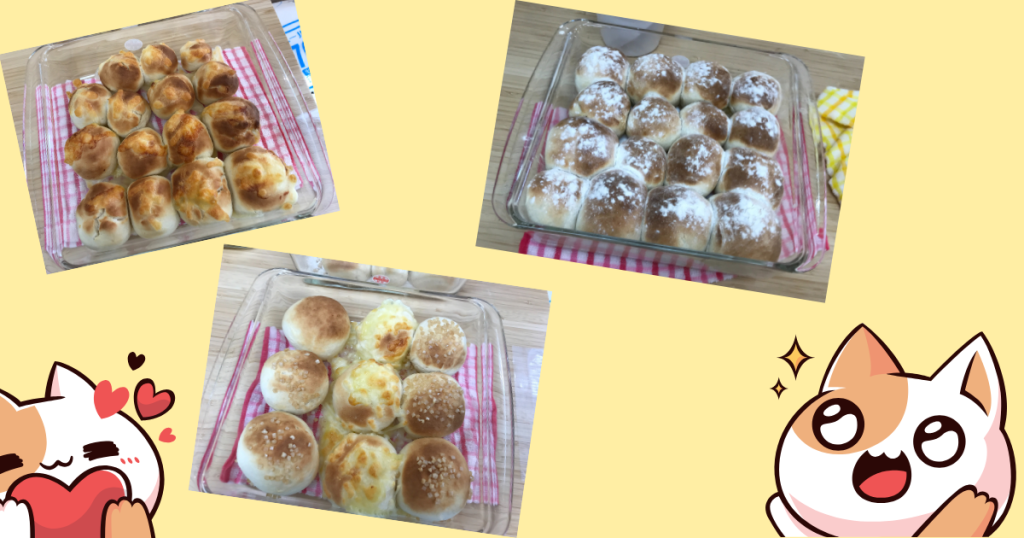 生地の発酵時間を考えるとそんなに多くは作れない為、今回は発酵なしの【ちぎりパン】にします。