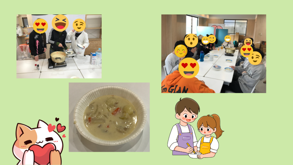 今年は何をやろうかと3年生に聞いたところ「給食のシチューを作りたい」との事。