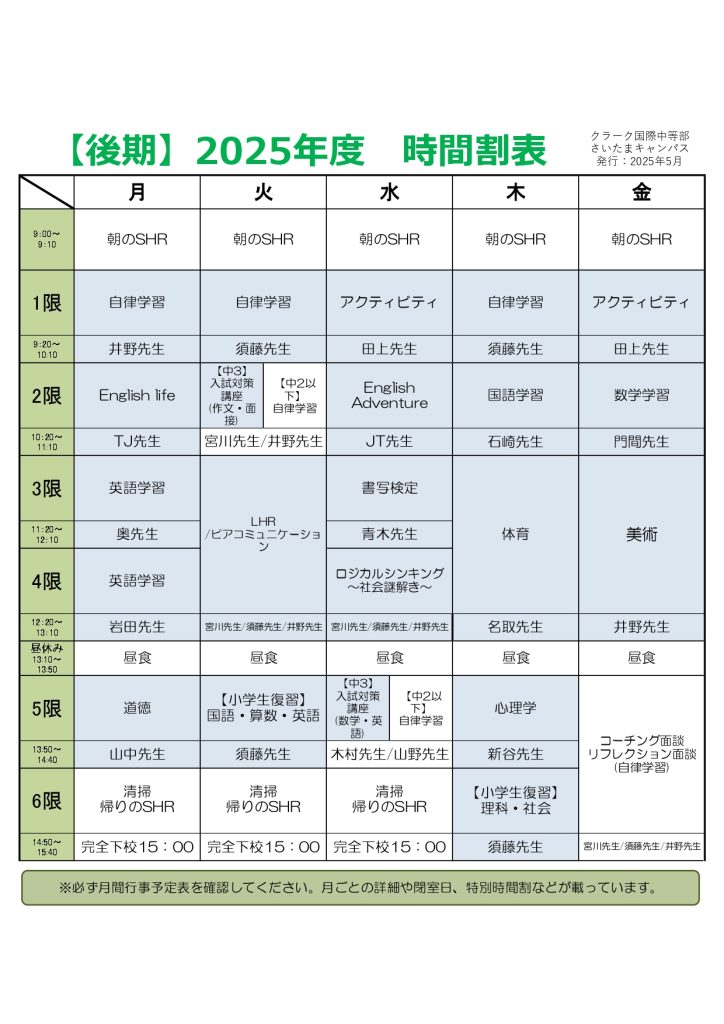 クラーク国際中等部の時間割紹介!