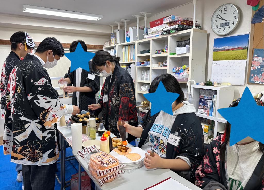 たこ焼きの生地を仕込んだり、材料やラムネを買い出ししたり、メニュー作成やお金の管理、さまざまな準備や役割分担を、みんなテキパキと動き、高校生に負けないくらいの働きっぷりで、とても頼もしく感じました。