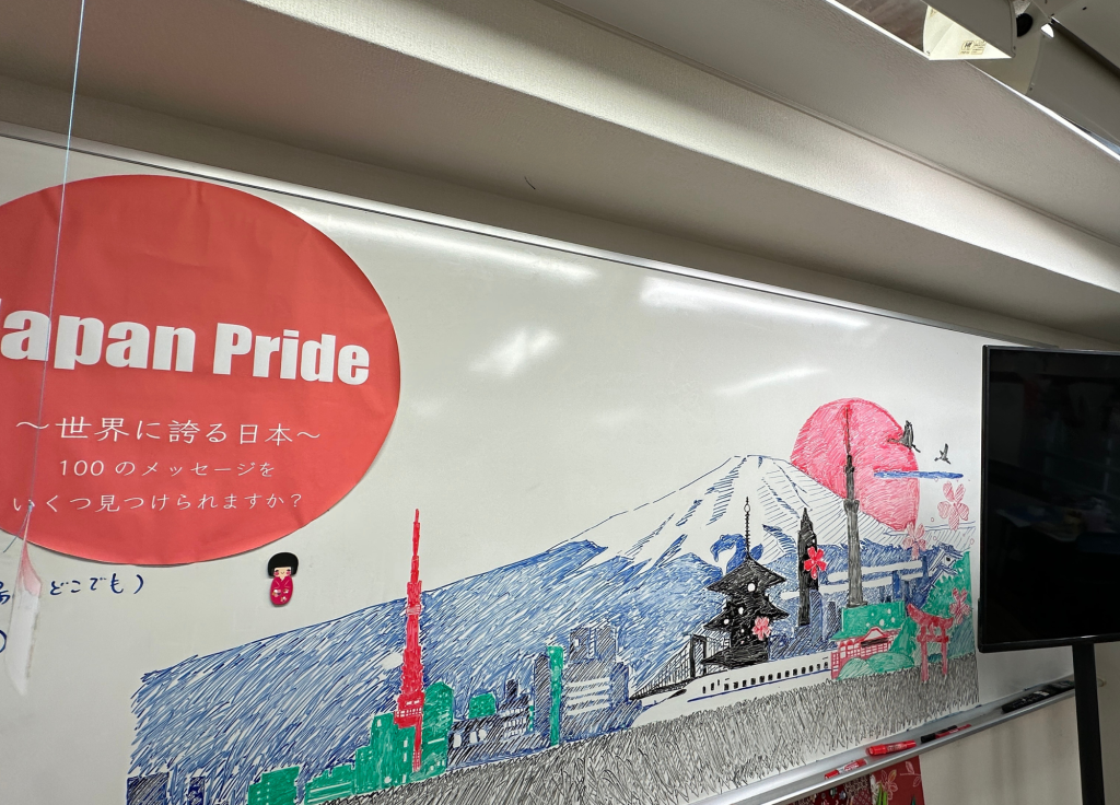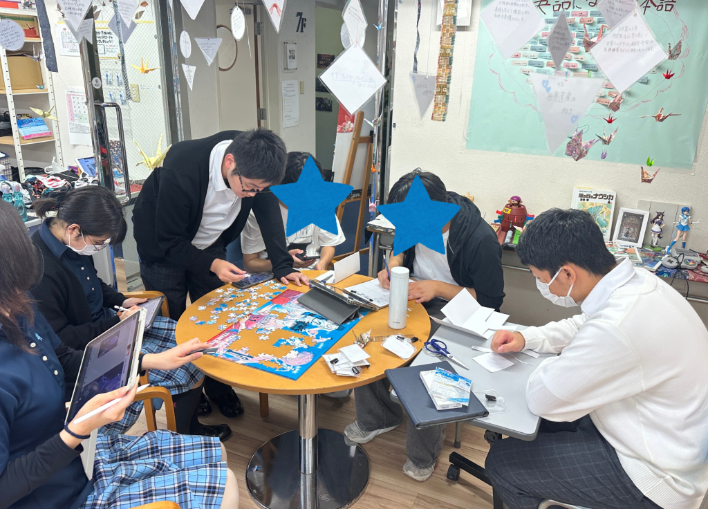 中等部はクラーク高校オンリーワンクラスと合同で展示を行い、今年のテーマ「万博」に合わせて「日本館」を担当しました。