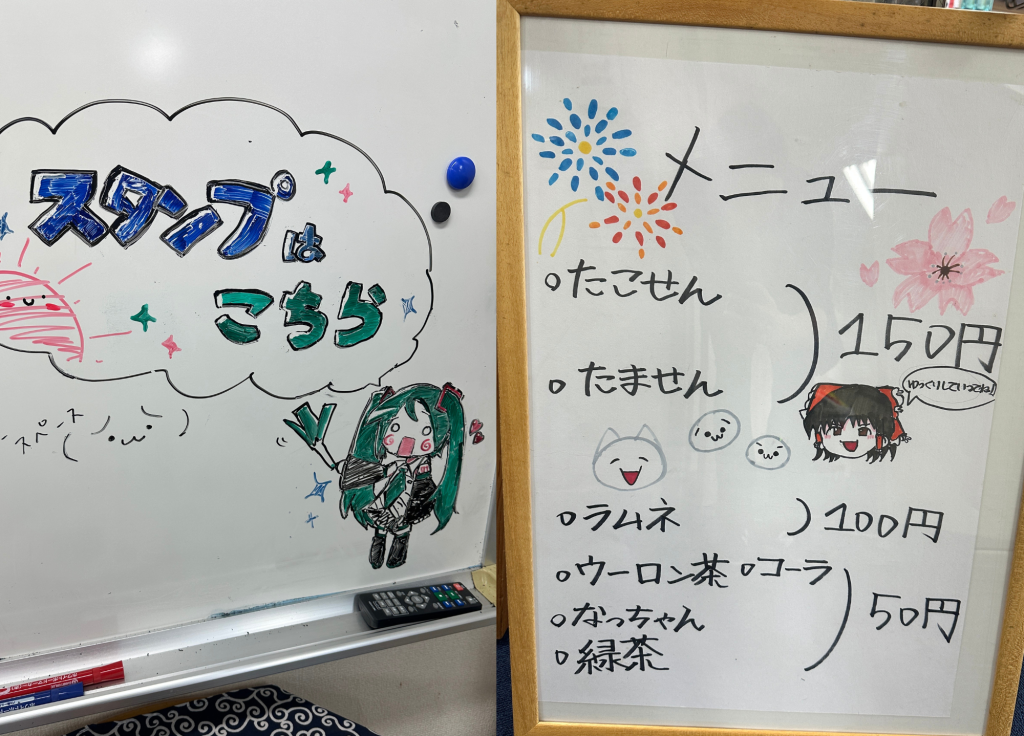 教室では、高校生と力を合わせて、たこせん、たませんとラムネを販売。