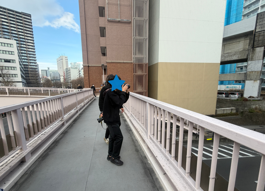 今回は先生のアドバイスを受けながら、歩道橋の上から電車を狙って撮影。