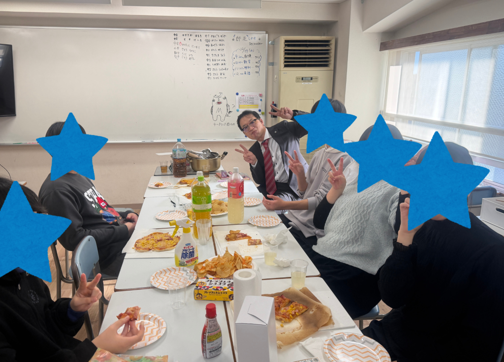 教室では、朝からクリスマスツリーを飾り付けしたり、みんなでピザやプリンを作ったり、いつもよりワクワクした雰囲気でした。