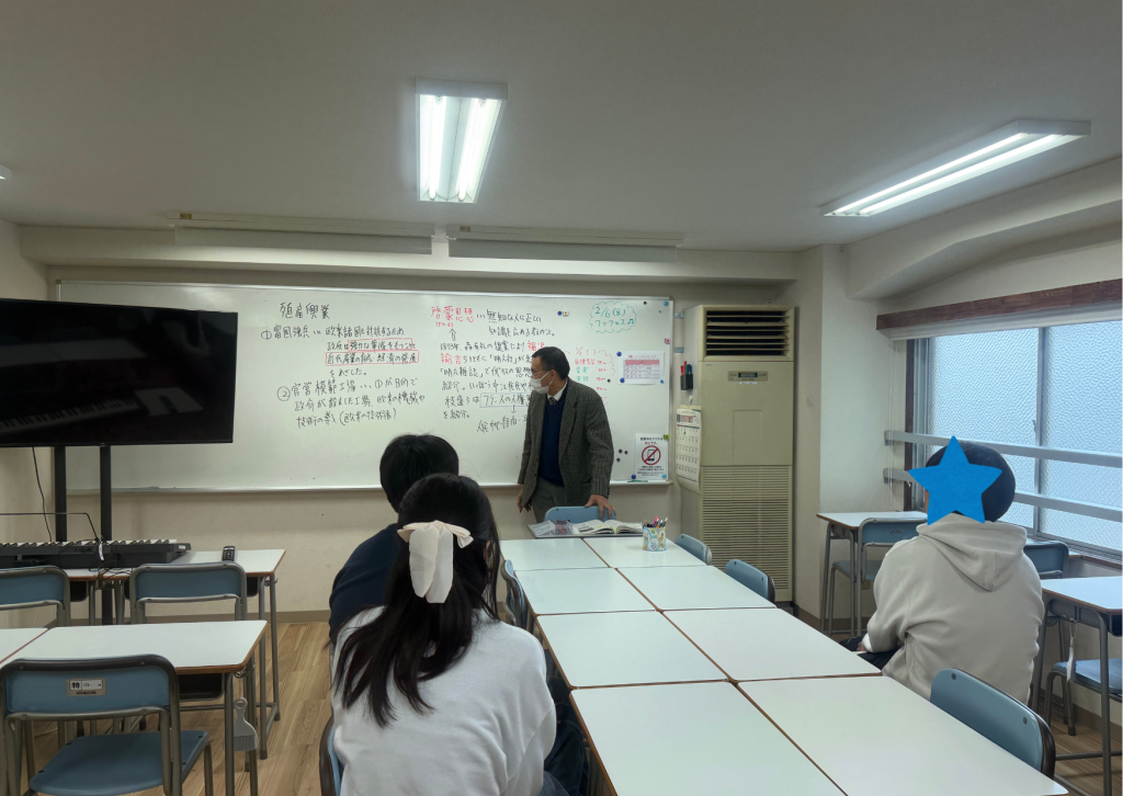 そして今日は、千田先生による「歴史」の授業もありました。 千田先生もまた、武川先生に負けず劣らずとってもパワフル!先生の歴史のお話をしっかりと生徒たちも聞いていた様子でした。