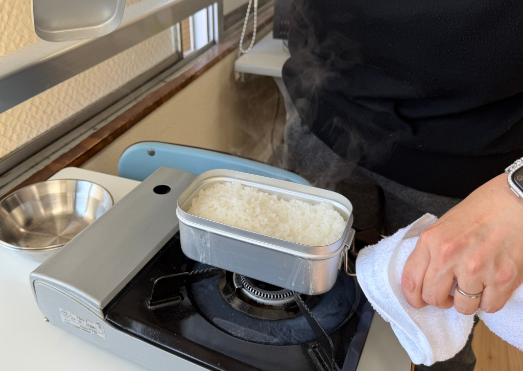 アルミ製の飯ごう「メスティン」を使って炊飯に挑戦。
