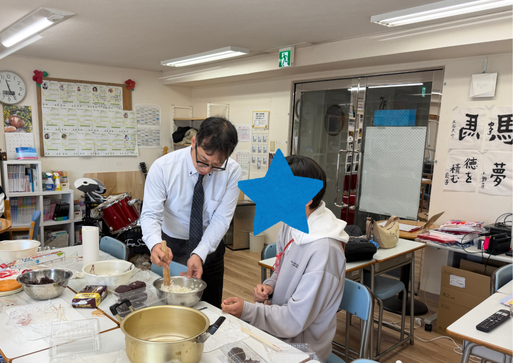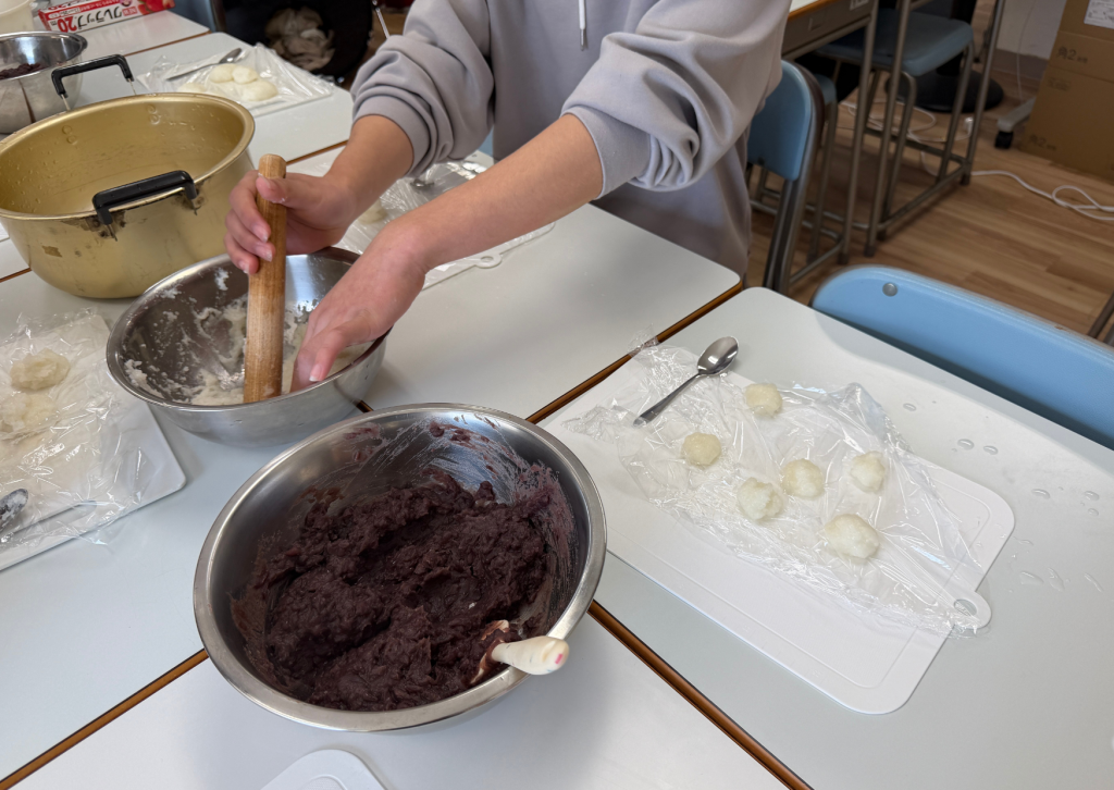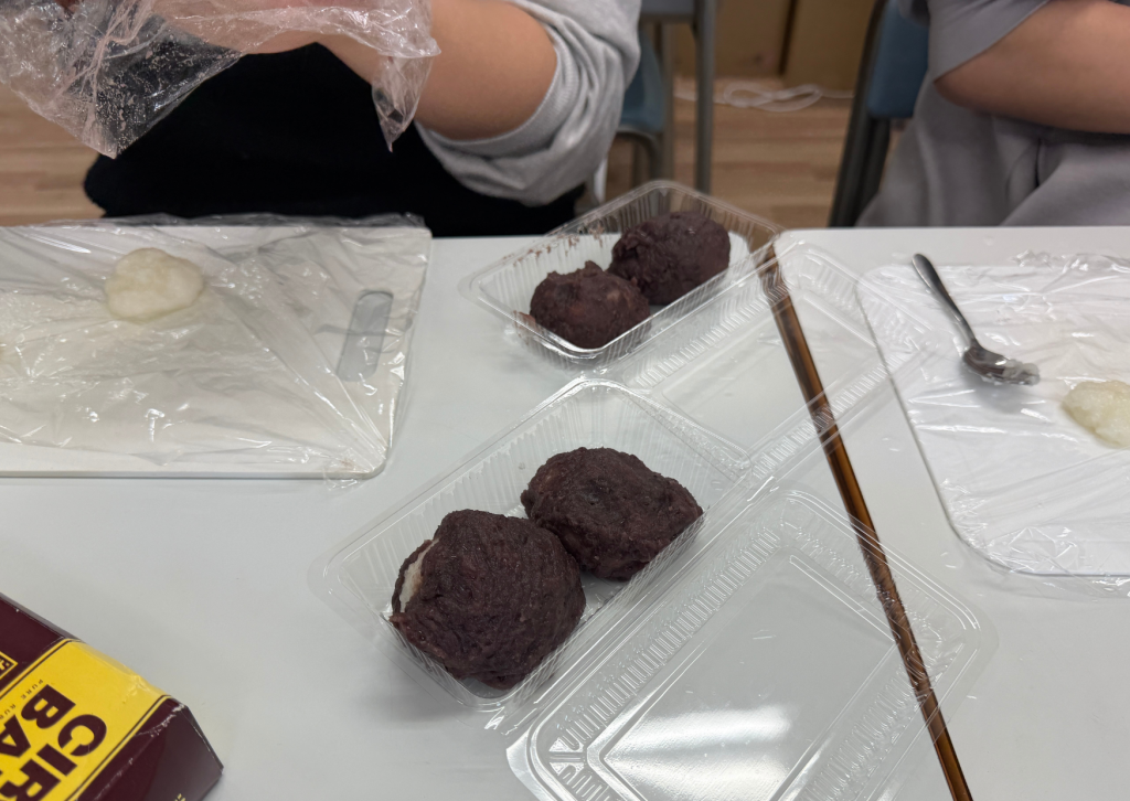最後のメニューは、みんなで仲良く「おはぎ」作り。