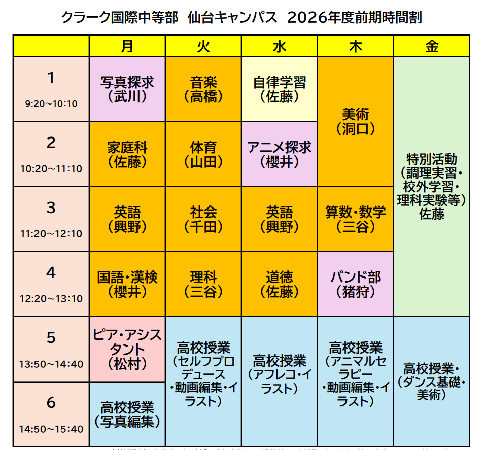 クラーク国際中等部の時間割紹介!