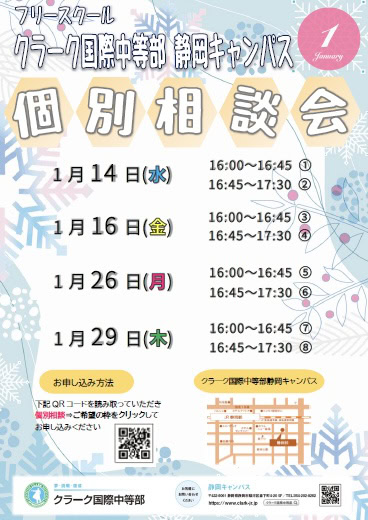 学校や子どもに関するお悩み相談、クラーク国際中等部についての説明をいたします!