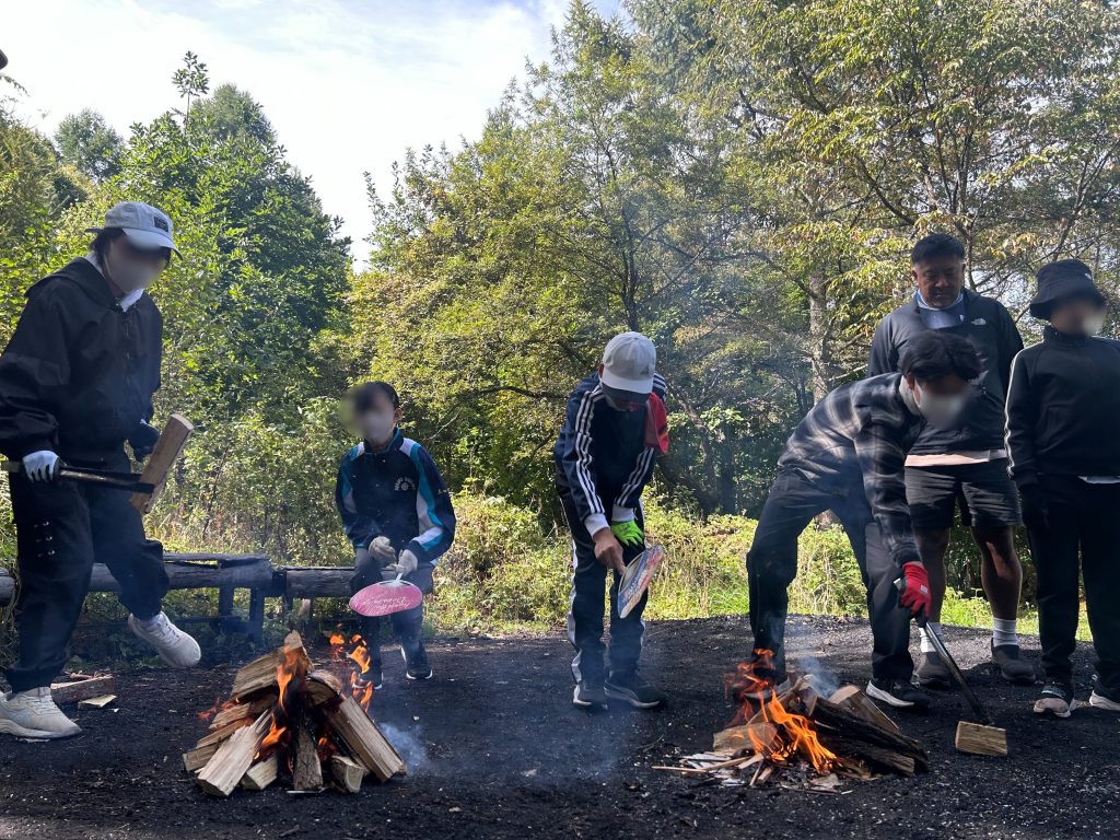 2日目は、八ヶ岳中央農業実践大学校での体験です。炭焼き・ジャム作り・木工制作の班に分かれて、それぞれ体験しました。