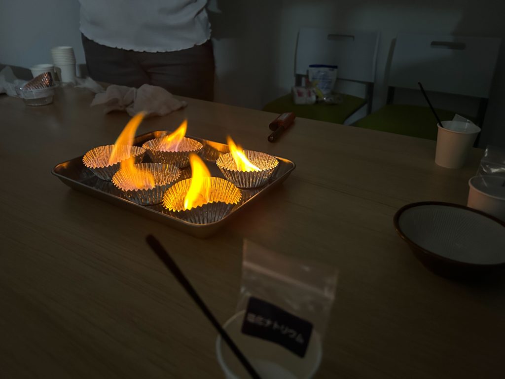 写真ではみんなオレンジ色の炎ですが、銅を入れると緑っぽくなったりなど、ちゃんと反応が見られていました🔥