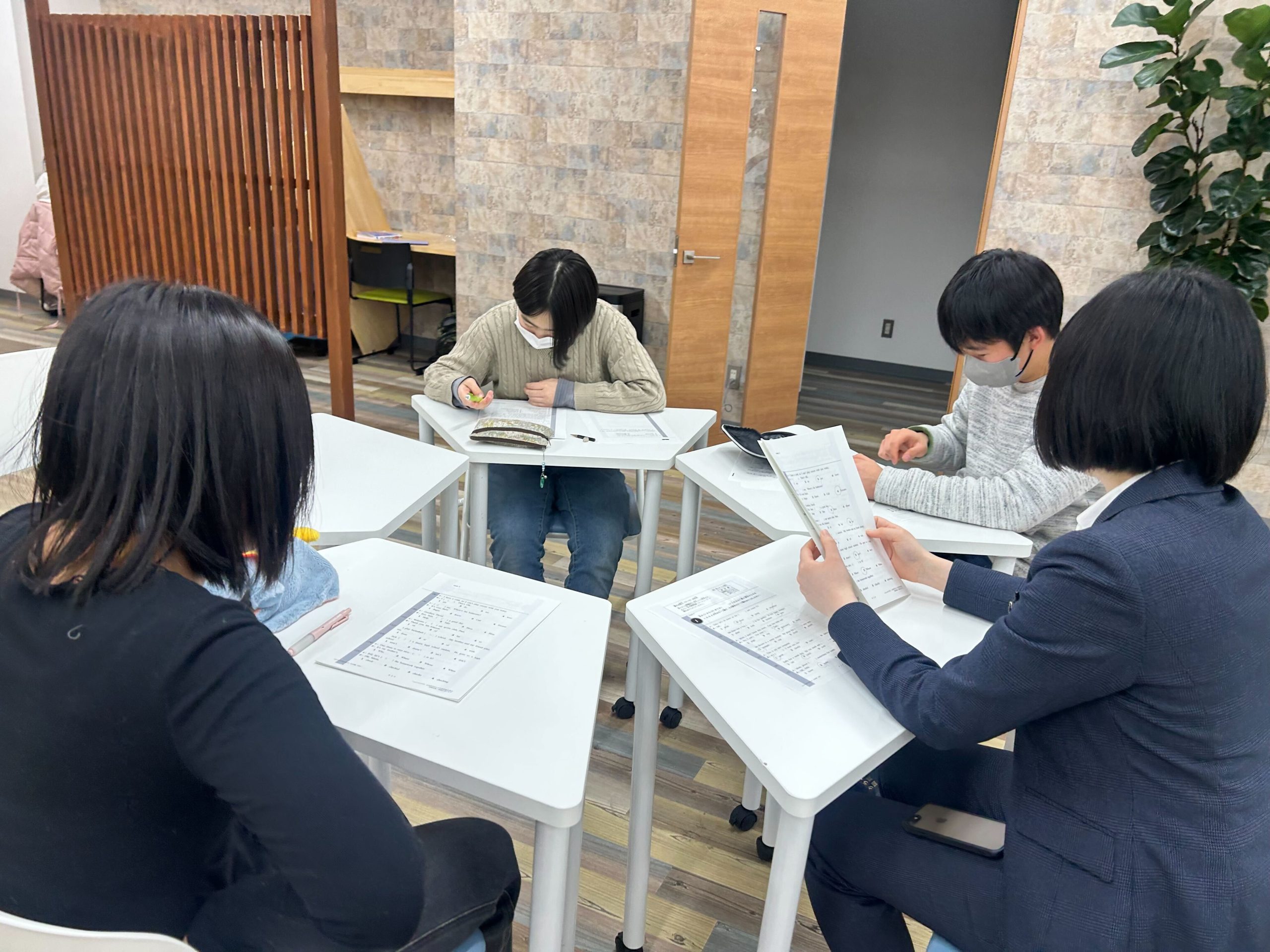 みんなで机を囲んで英語検定対策!