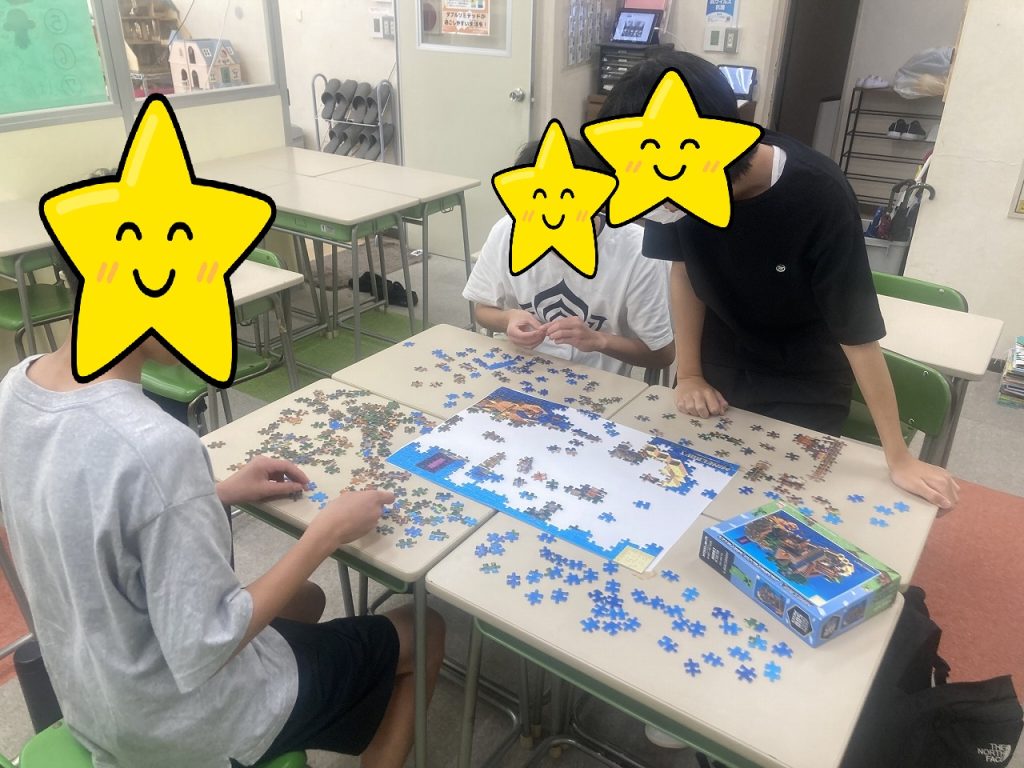 今回,とあるグループはジグソーパズルに挑戦しました。みんなで協力し,役割分担をしながら作成し,1000ピースのパズルを完成させることができ,達成感を味わうことができました。