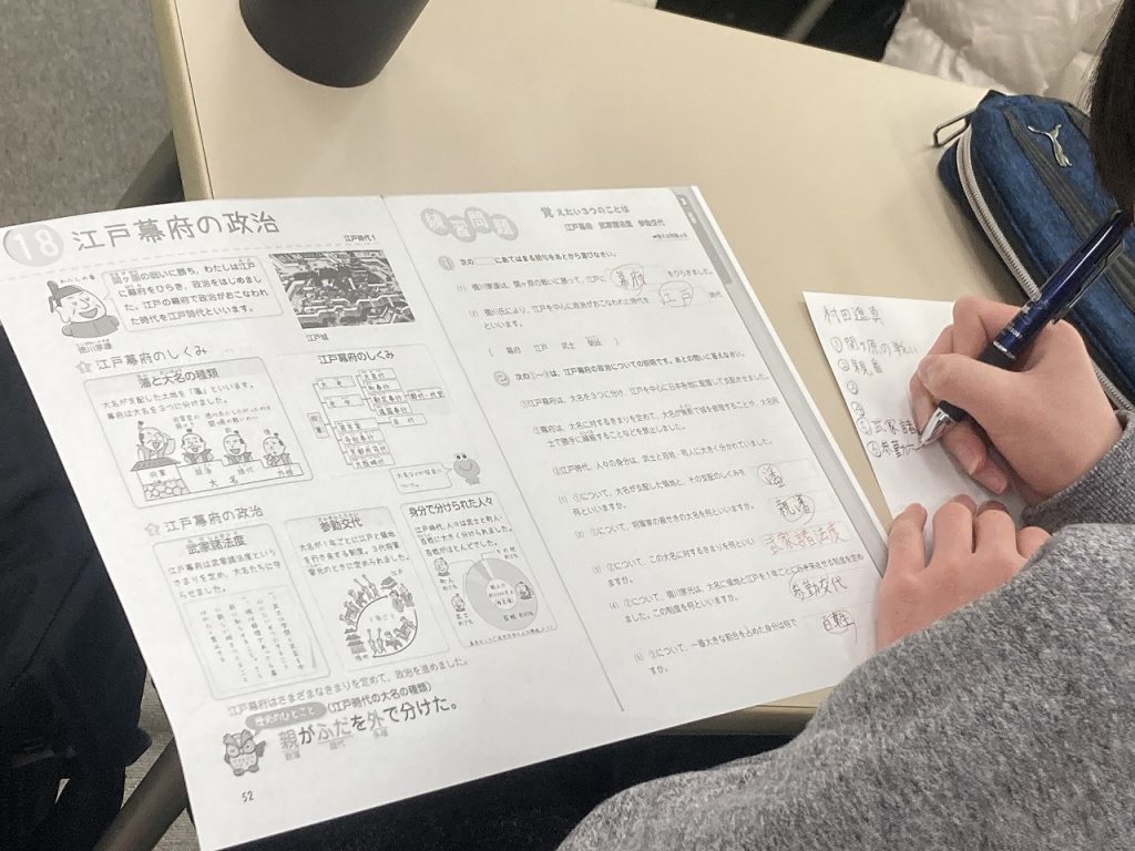 横浜キャンパス木曜日の2時間目は「歴史」の授業。毎回テーマに沿って日本にの流れを学習しています。この日は江戸幕府の政治をテーマとした授業を行いました。授業で習った内容はクイズ形式での確認を行うことによって知識の定着を図っています。