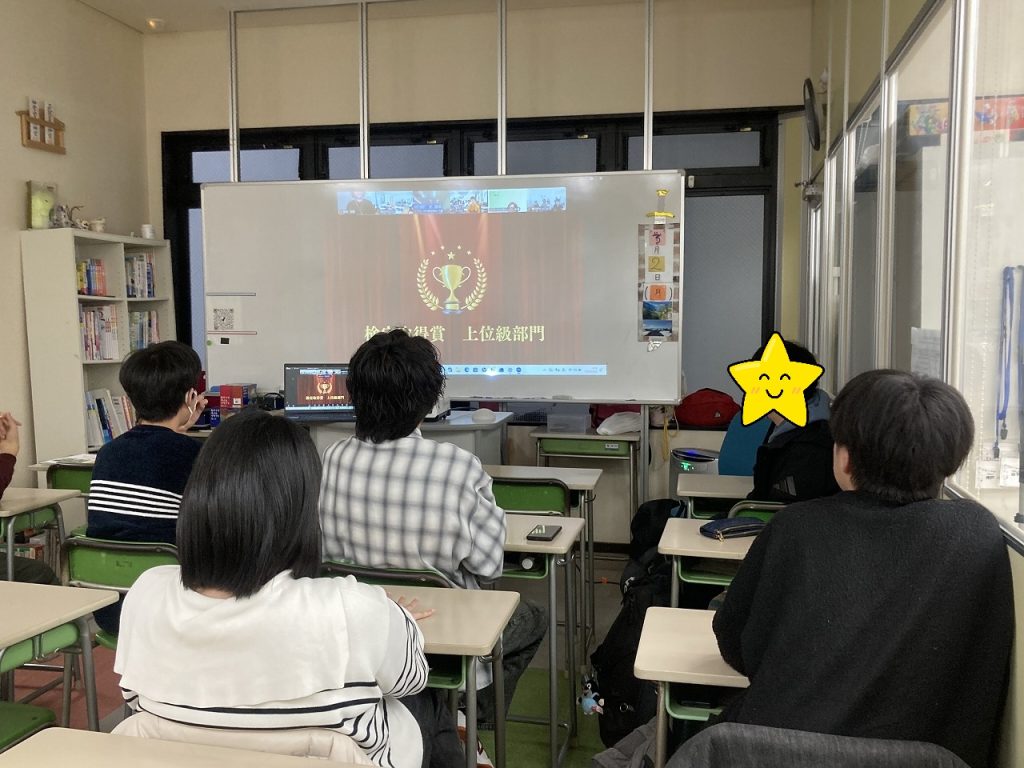 クラーク国際中等部は全国にキャンパスがあります。この日は全国の中等部キャンパスをオンラインでつないで全校集会が開かれました。全校集会では今年度の児童・生徒の活躍を表彰したり,合同の行事であった北海道体験学習や,留学についての報告などもありました。一年間を振り返り,思い出話に花が咲きました。