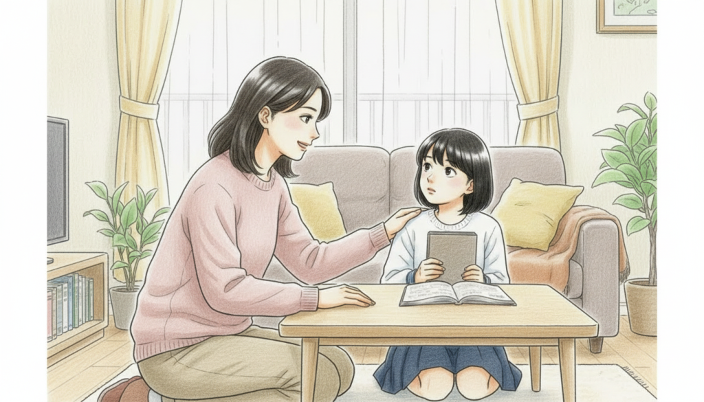 言葉だけでなく、スキンシップや笑顔での接し方も大切です。子どもが安心できる雰囲気を作ることで、心を開きやすくなります。ただし、思春期に入ると、その距離感が児童期と変わって煩わしいという表現を子どもがする場合もあります。子どもの成長に応じて、言葉以外のサポートのあり方、心地よい距離感を心がけると良いでしょう。