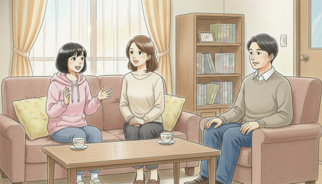 家族や友人、同じように思春期の子との関わりに悩む保護者との交流の中で、話を聞いてもらったり話を聞くことで、心の負担を減らすことができます。