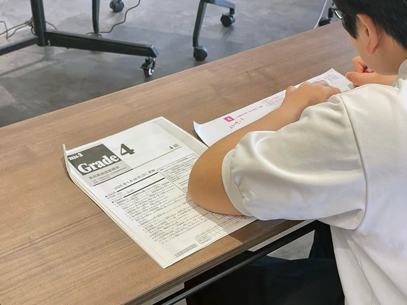 3級〜1級合格を目指す生徒に向けて、高校の英語科教員がマンツーマンで2次試験(スピーキング)の対策を行っています。実際の面接形式で練習しながら、自分の考えを英語で伝える力を養います。準1級・1級の受験者には、ネイティブ教員が担当し、より実践的な指導を行います。