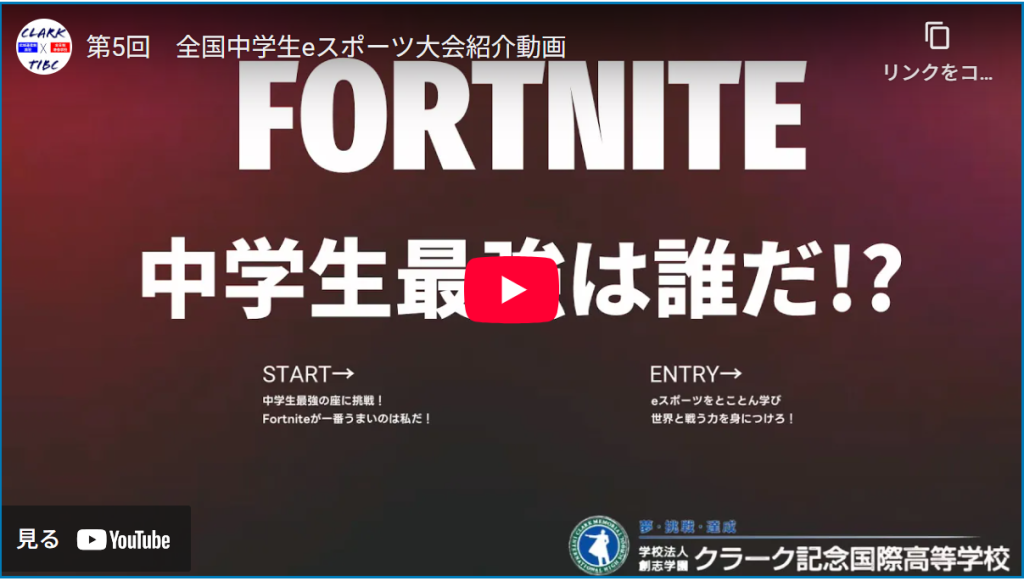 【イベント案内】『第5回 全国中学生e-Sports選手権』クラーク国際主催 FORTNITE中学生最強は誰だ!?エントリー受付中